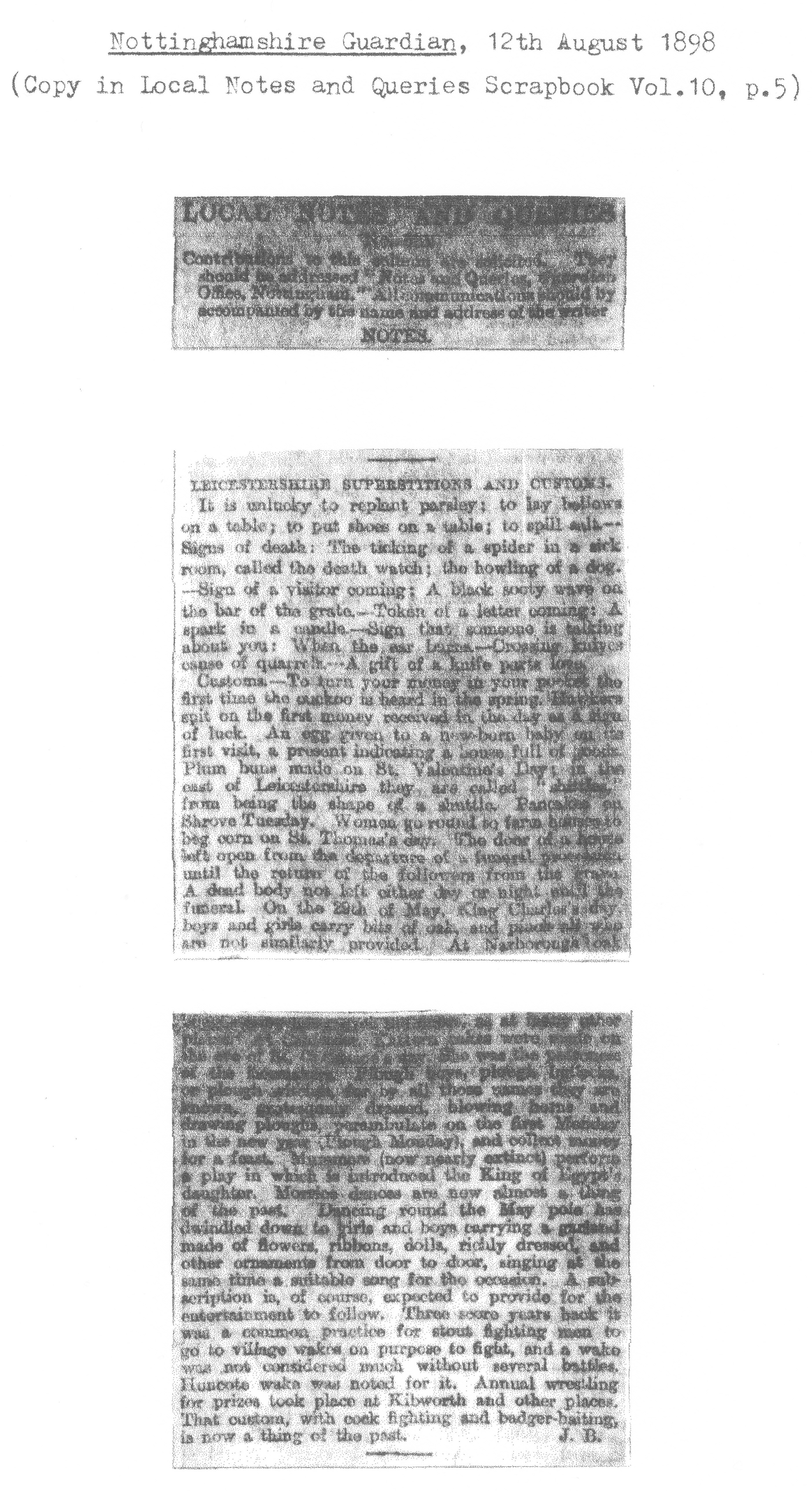 *LOCAL NOTES AND QUERIES: LEICESTERSHIRE SUPERSTITIONS AND CUSTOMS