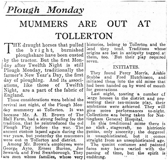 Plough Monday: MUMMERS ARE OUT AT TOLLERTON