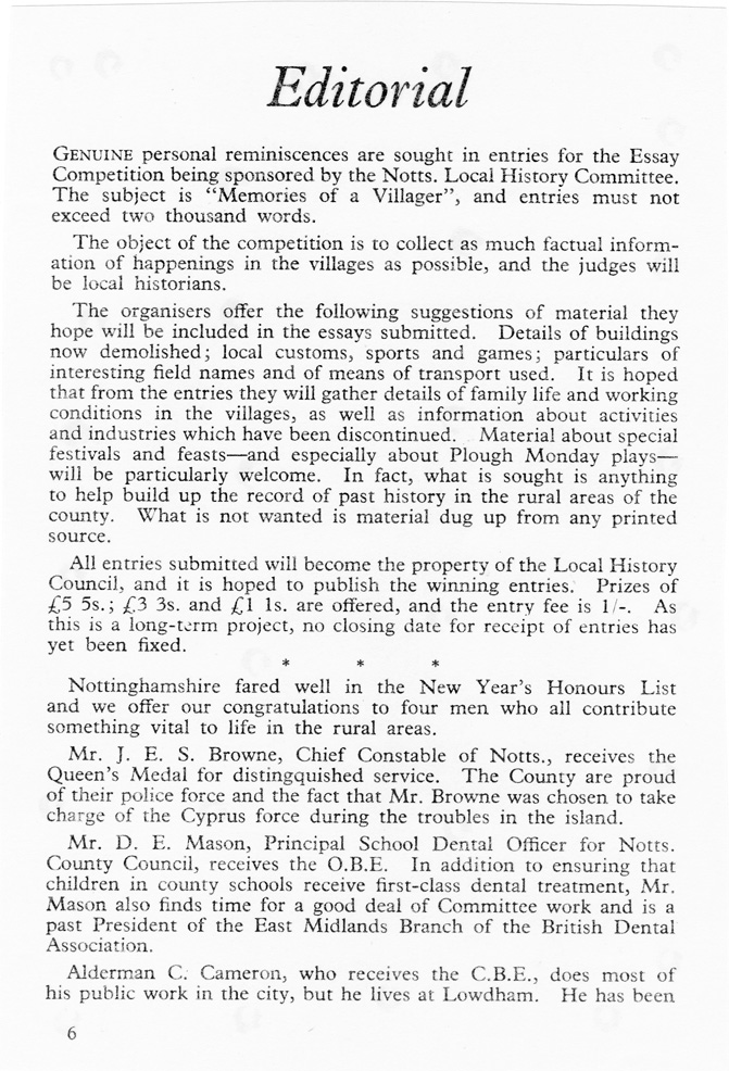 Editorial [and] COMPETITION ENTRY FORM: Essay on "Memories of a Villager"]