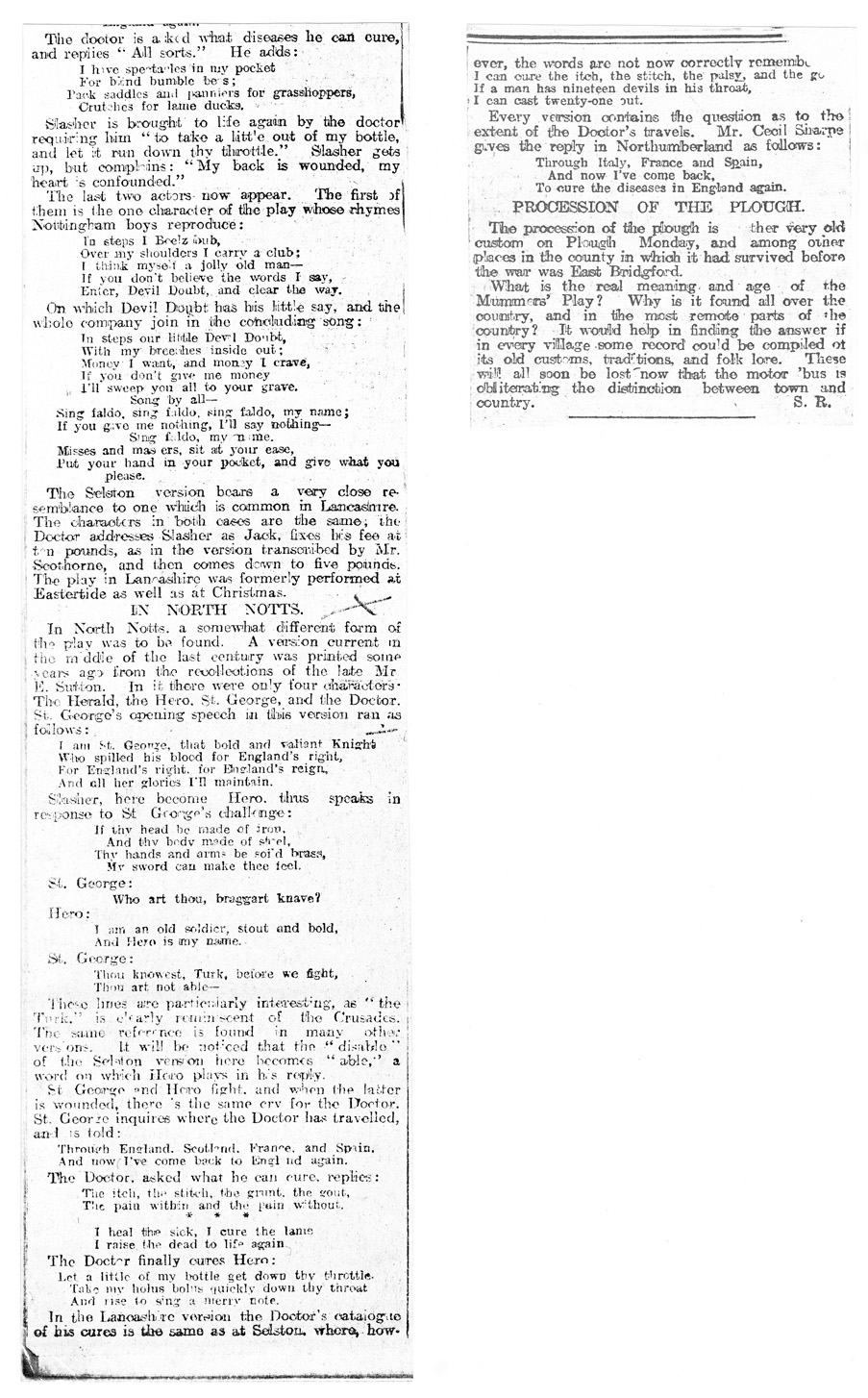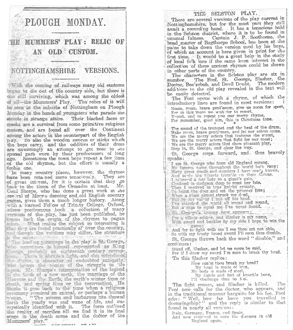 PLOUGH MONDAY: THE MUMMERS' PLAY: RELIC OF AN OLD CUSTOM: NOTTINGHAMSHIRE VERSIONS