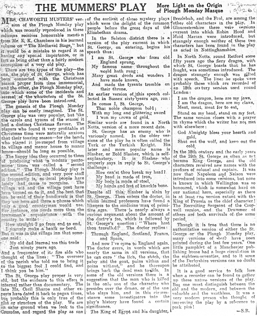 THE MUMMERS' PLAY: More Light on the Origin of Plough Monday Masque