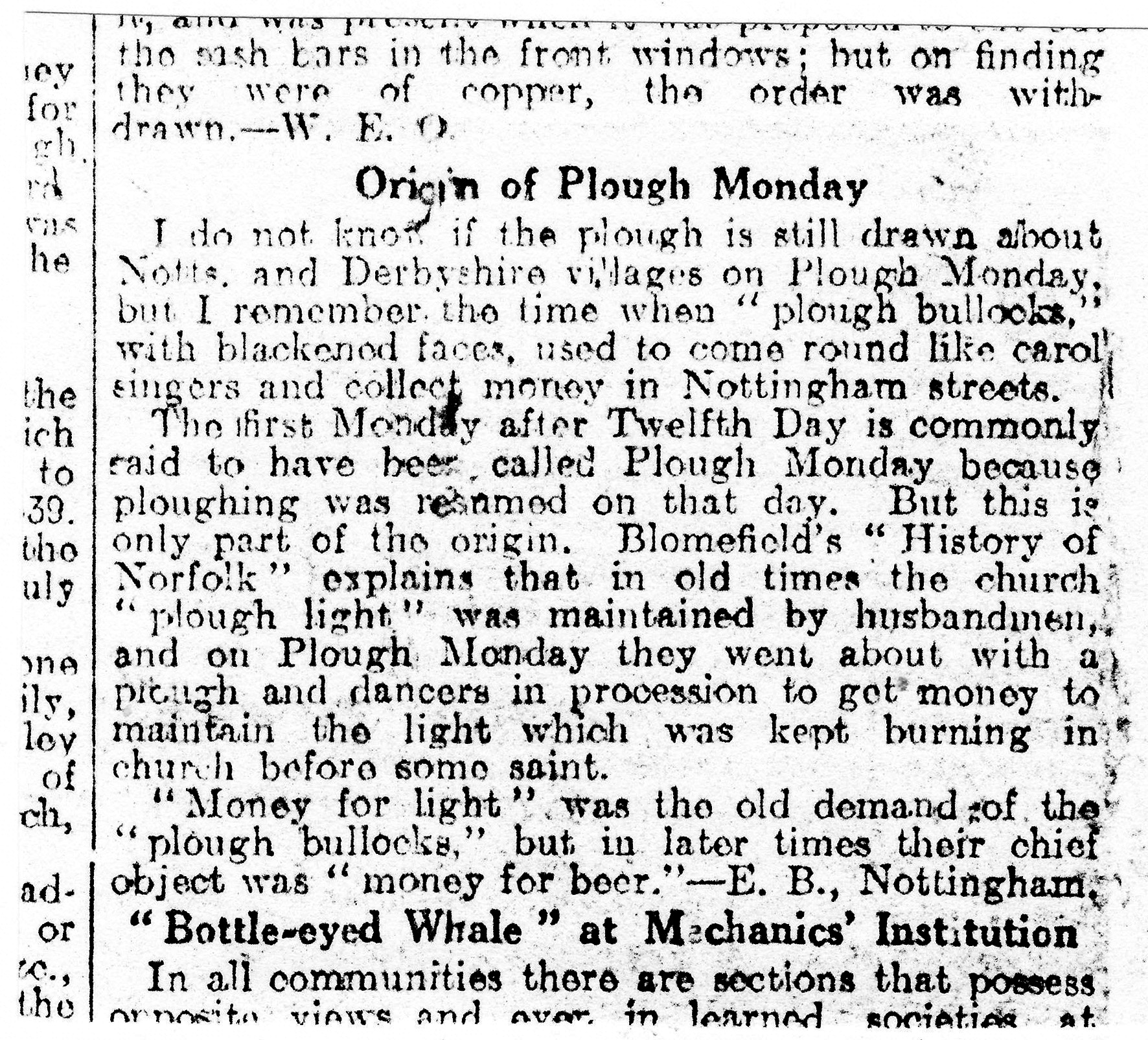 LOCAL NOTES &.QUERIES: Origin of Plough Monday