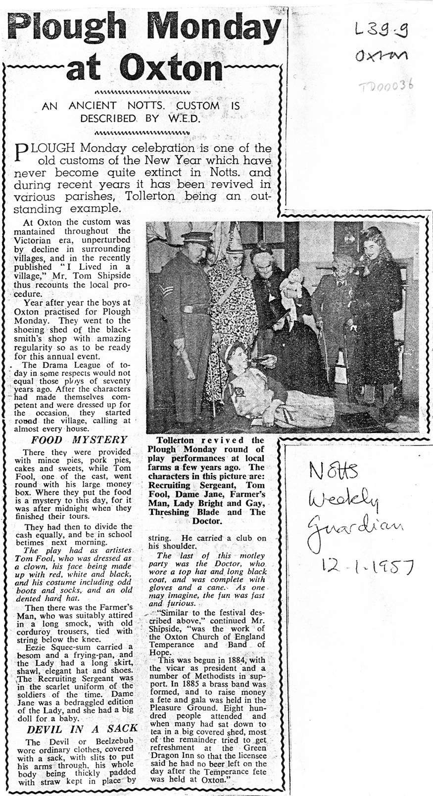 Nottinghamshire List of Folk Plays & Related Customs