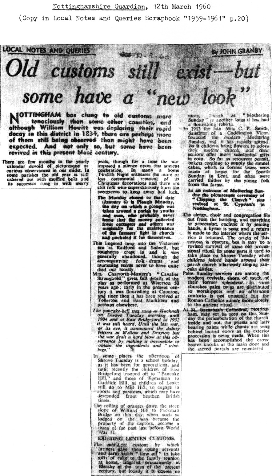 *LOCAL NOTES AND QUERIES: Old customs still exist - but some have a "new look" [Plough Monday in Notts.]